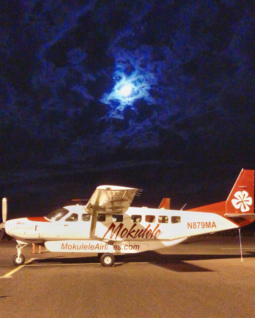 This is a very neat picture of a Blood Moon that she took just after relocating to Hawaii in January 2018. Nice picture of the Mokulele Cessna Caravan.