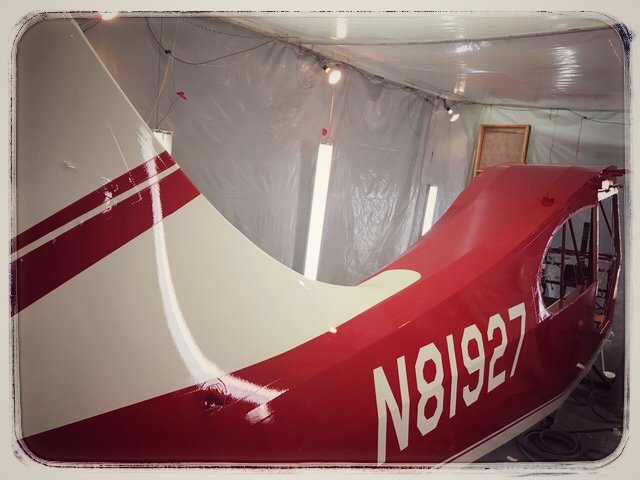 The wings were stripped of the cloth and all the metal parts removed, bead blasted and primed. The spars were inspected for rot and the “one time” inspection for rib nails coming out. A new coat of wood varnish was applied to the spars and then everything reassembled. New leading edges from Wag Aero were installed as the originals were too beat up.
